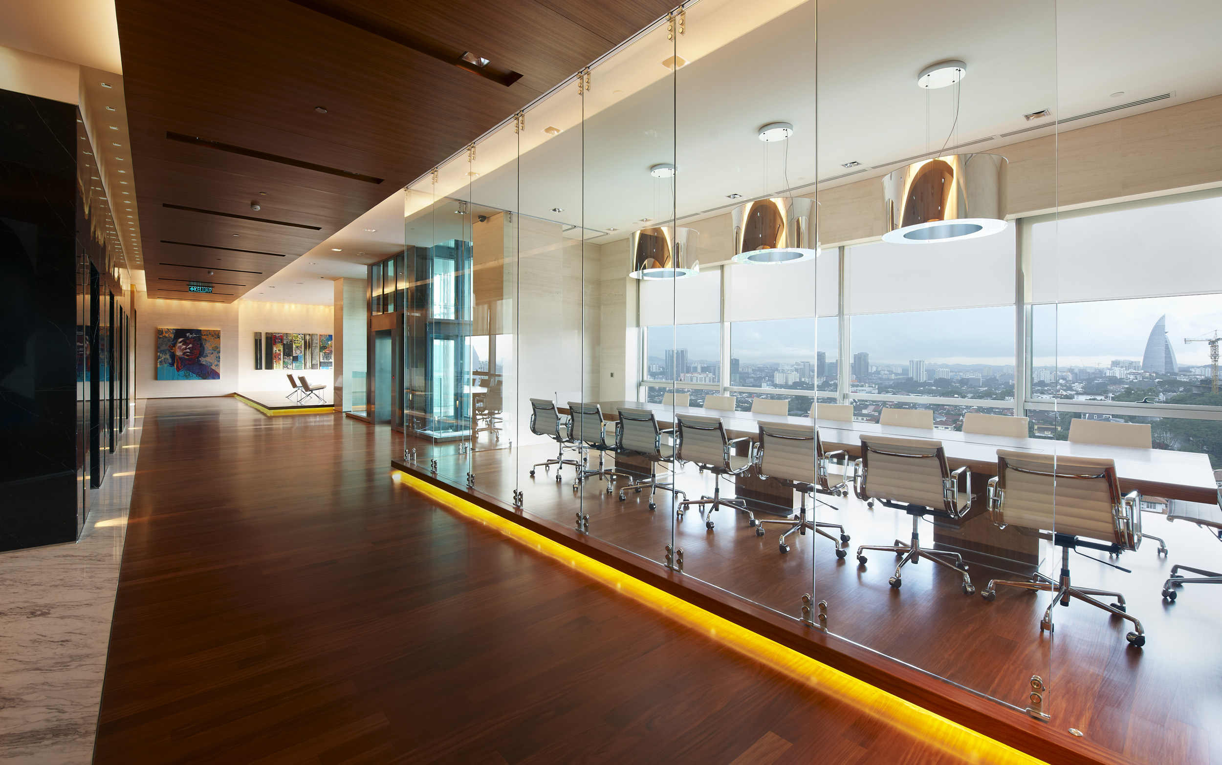 This premium property developer appointed iPartnership to create their 50,000 sq ft corporate offices in their new purpose-built headquarters. Although traditionally the base building architect would be responsible for the interiors of public spaces within a building, in this project, iP’s scope encompassed all the public areas including the main drop off areas, public spaces and toilets in the entire building. Working closely with GDP Architects, iP was also responsible for the carving out of a large void in their executive floors, the introduction of a private lift on the building perimeter, and the inclusion of two entertainment pavilions on the rooftop of the building.