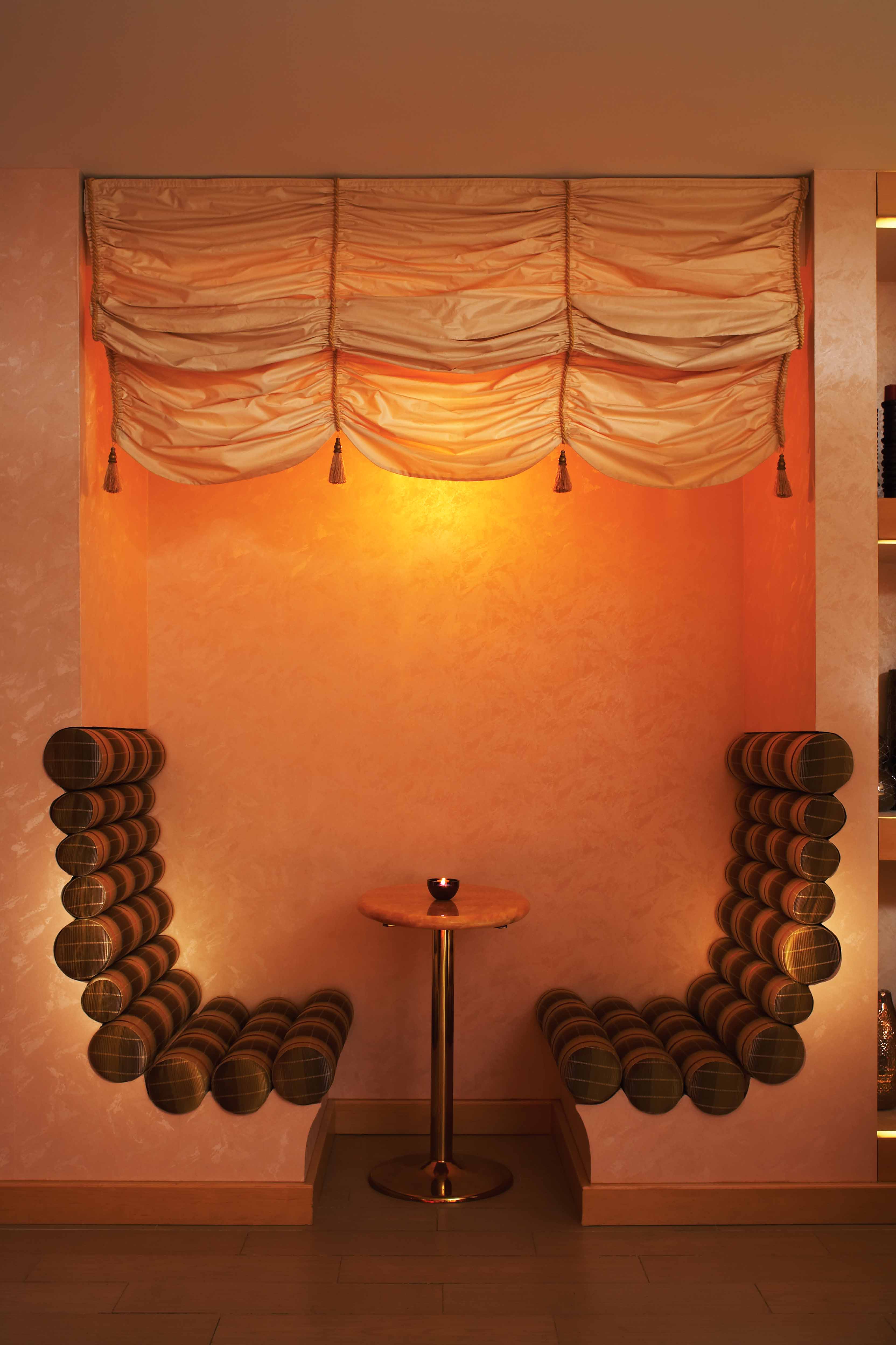 A glimpse of the exotic middle eastern mystique with today’s attitude. The club with a capacity for 114 persons is becoming the place to see and be seen in Kuala Lumpur. The cluster of tents gives patrons a sense of privacy if necessary with the encompassing curtains around each tent. There is also a genteel library / seating area with pool tables located towards one side of the lounge. The length of the lounge makes it an ideal location to hold fashion shows and events. The `Gold’ DJ booth with its original design contributes to the sensual sense of the space. The audio visual is worlds class and is beyond par in the city. The rest rooms also carry the middle eastern theme and has a unique stainless steel sink with an organic feel; with its undulating curves. The lounge is accessible via a lift from the ground floor lobby of the Mandarin Oriental. Access from Pacifica is also possible via the lift or staircase.